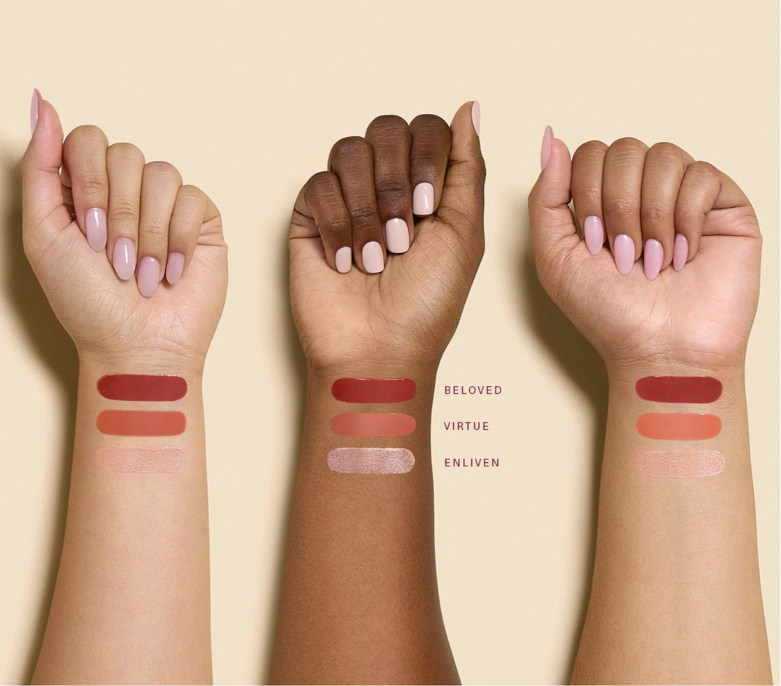 Suave, ligero y duradero, el rubor líquido en miniatura Soft Pinch en Virtue (melocotón beige) y el nuevo y exclusivo del set Beloved (sangre de buey apagado) se mezclan y se aplican como un sueño para lograr un suave rubor que favorece a todos los tonos de piel.
